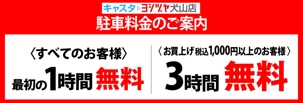 税込1,000円以上お買い上げの方には各店レジ(一部テナントを除く)、1階インフォメーション および ヨシヅヤお客様センターにて、QRコード付の駐車サービス券(2~4時間追加)を発行いたします。