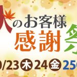 犬山キャスタでは、日頃のご愛顧に感謝の気持ちを込めて、10月23日(木)~25日(土)の3日間、「秋のお客様感謝祭」を開催いたします。