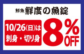 日曜日に対象商品が8%OFF!「鮮度の魚錠 犬山キャスタ店」では10月26日(日曜日)、対象商品の刺身・切り身を合計1,080円(…