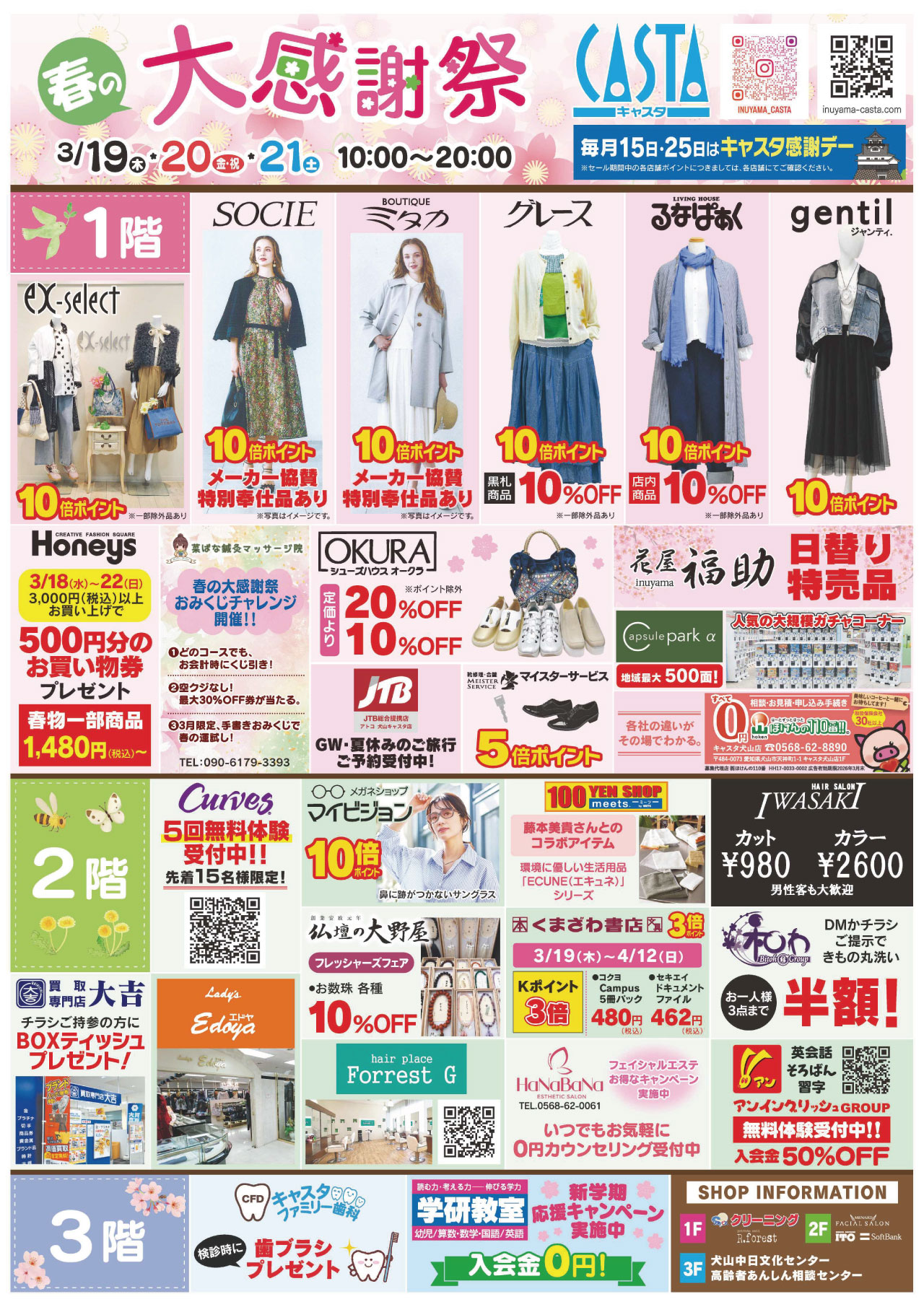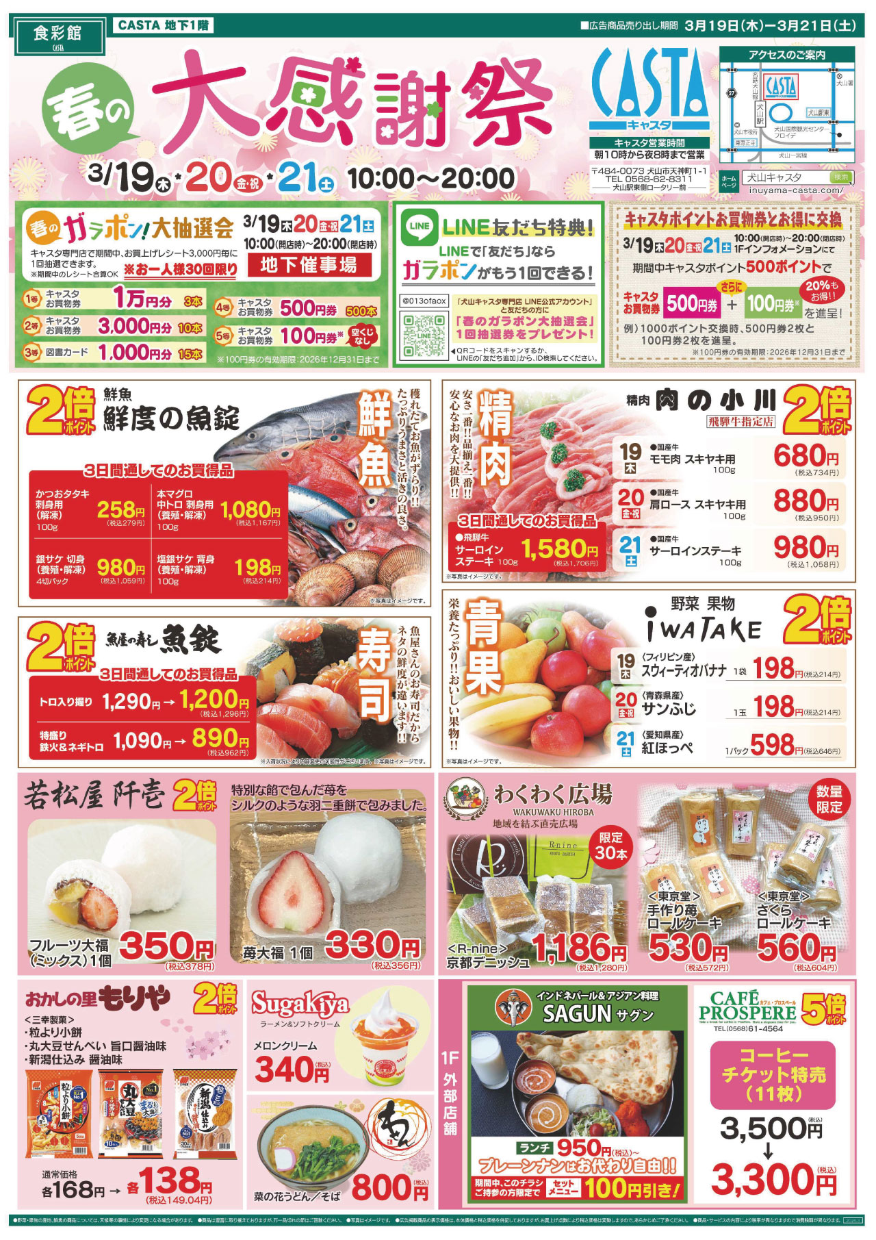 犬山キャスタ専門店では、日頃のご愛顧に感謝の気持ちを込めて、3/19(木)・20(金祝)・21(土)の3日間、「春の大感謝祭」を開催いたします ♪