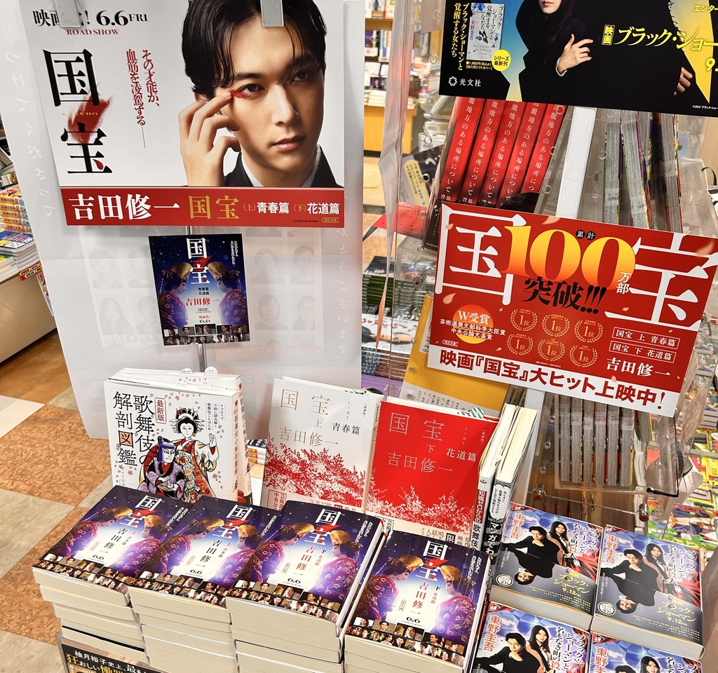 ただいま同店では大ヒット中の映画『国宝』の原作、吉田修一さんの『国宝』(「青春篇」と「花道編」の上下二巻)を好評発売中です ♪