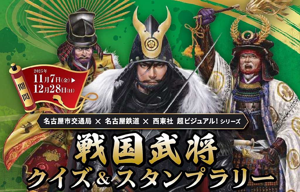 市営交通、名鉄に乗って『超ビジュアル!』シリーズ「戦国武将クイズ&スタンプラリー」をお楽しみください。